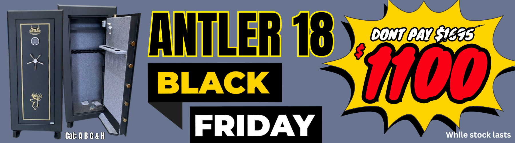 - Category H – the final category – encompasses only handguns and pistols. This type of gun must always be kept in a steel safe.