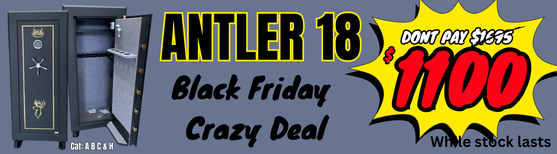 - Category H – the final category – encompasses only handguns and pistols. This type of gun must always be kept in a steel safe.